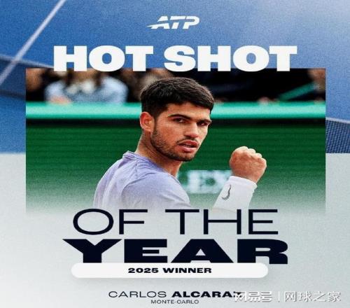 此前,阿尔卡拉斯在蒙特卡洛大师赛迎战德国人阿尔特迈尔时的极限截击+胯下穿越,当选了2025年度ATP巡回赛最佳击球。在这两项评选中,激情四射的阿尔卡拉斯都成为获奖者,可喜可贺!