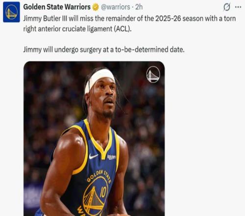 右膝前十字韧带撕裂,赛季报销。