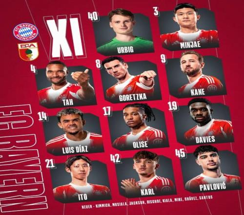 北京时间1月24日22:30,德甲第19轮,拜仁主场对阵奥格斯堡。赛前首发公布。
